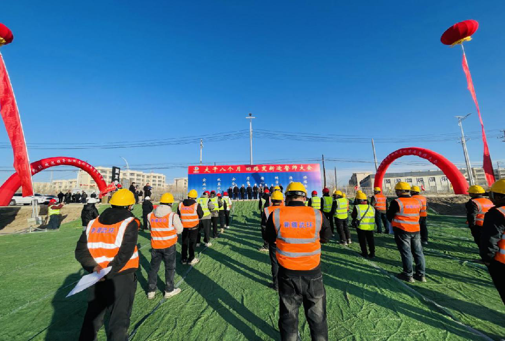 活动现场,红旗招展、机械列阵,全体参建人员精神抖擞、士气如虹,新疆武环建筑工程有限公司发出动员令,吹响项目攻坚“冲锋号”,号召全体建设者坚持“安全第一、质量至上”的施工理念,全面掀起大干热潮。活动最后,发展中心负责同志强调,该项目不仅是打通区域交通脉络的关键工程,更是惠及沿线群众、服务地方发展的民生之路。全体参建单位要以时不我待的紧迫感和责无旁贷的使命感,全力以赴抓进度、保质量、守安全,确保按期实现“旧路变新途”的建设目标。