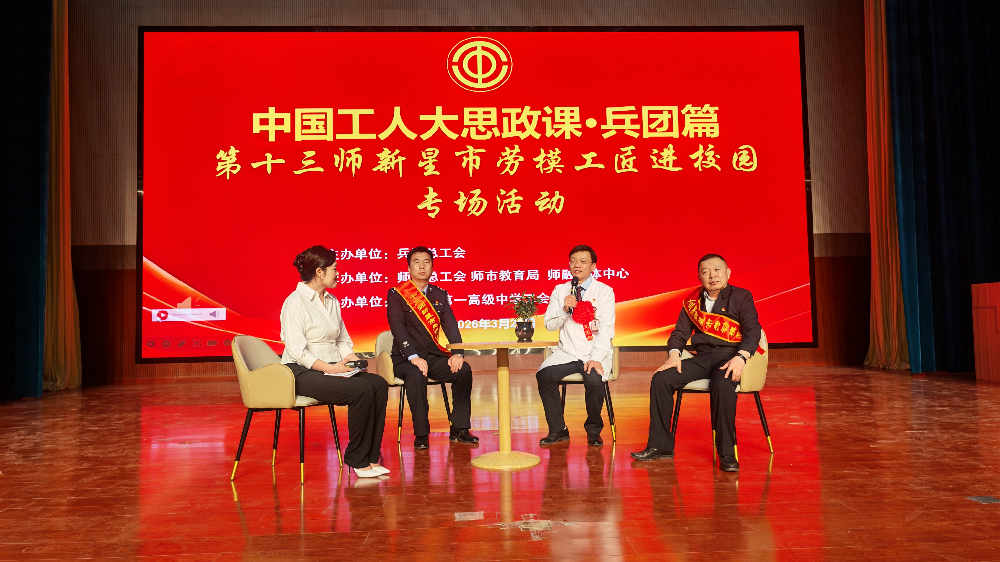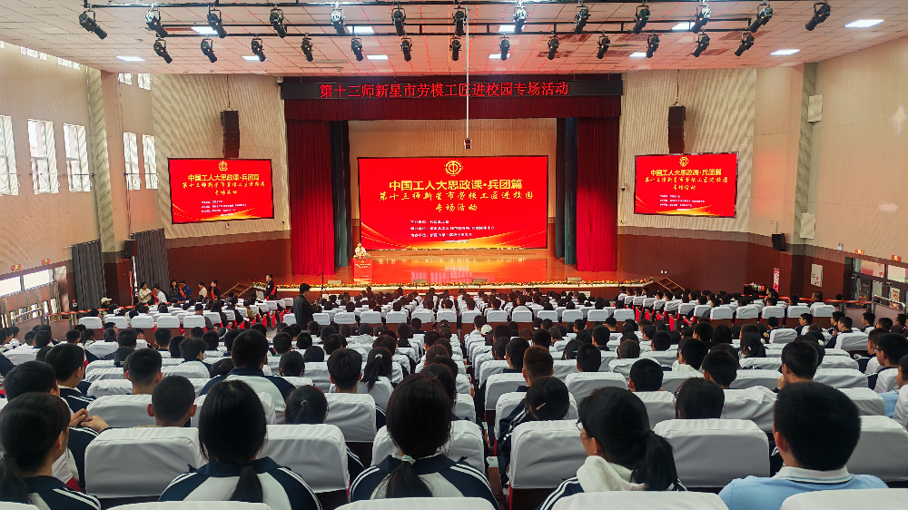 3月25日,由兵团总工会主办,师市总工会、教育局、师融媒体中心联合承办的2026年“中国工人大思政课・兵团篇”第十三师新星市劳模工匠进校园专场活动,在新星市第一高级中学成功举办。