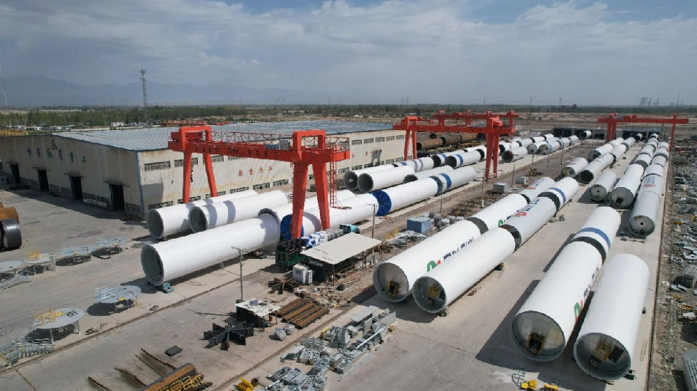 8月28日,走进红星二场哈密红星重工有限公司,一排排组装成型的风机塔筒停满了整个厂区。生产厂房内,一派热火朝天的生产景象映入眼帘:巨型钢板经卷圆、组对后形成筒节,工人们手持焊枪在塔筒接缝处精准作业,高温下的焊花如繁星般四溅,在机器的嗡鸣中,一座座的钢铁塔筒逐渐成型。