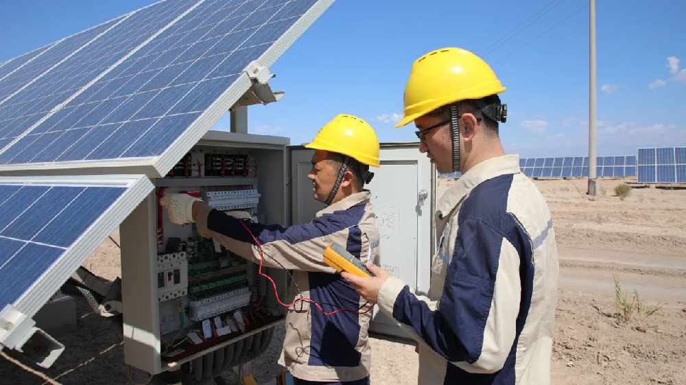 与此同时,在红星二场哈密新风光发电有限公司疆源兴民光伏一电站,值班员朱斌和同事一起对设备巡检,检查逆变器、汇流箱等设备,排查安全隐患,确保设备平稳运行。