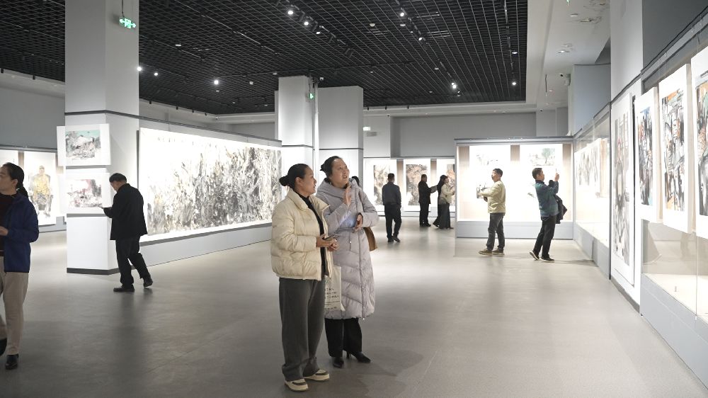 11月27日,“戍楼西望 大漠军垦”水墨作品展在师市图书馆展出。