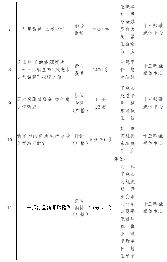 兵团第十三师融媒体中心推荐参加第36届新疆新闻奖(初评)作品的公示