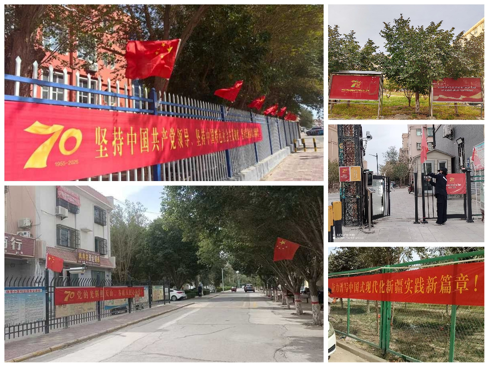 在新疆维吾尔自治区成立70周年的喜庆时刻,新疆大佳城市服务有限公司携各事业部、分公司联动,以“中国红”为底色,以“至净至美”为标准,以“温暖同行”为初心,在各服务小区精心营造节日氛围,与万千业主共贺新疆华诞,让喜庆与祥和浸润每个小区。