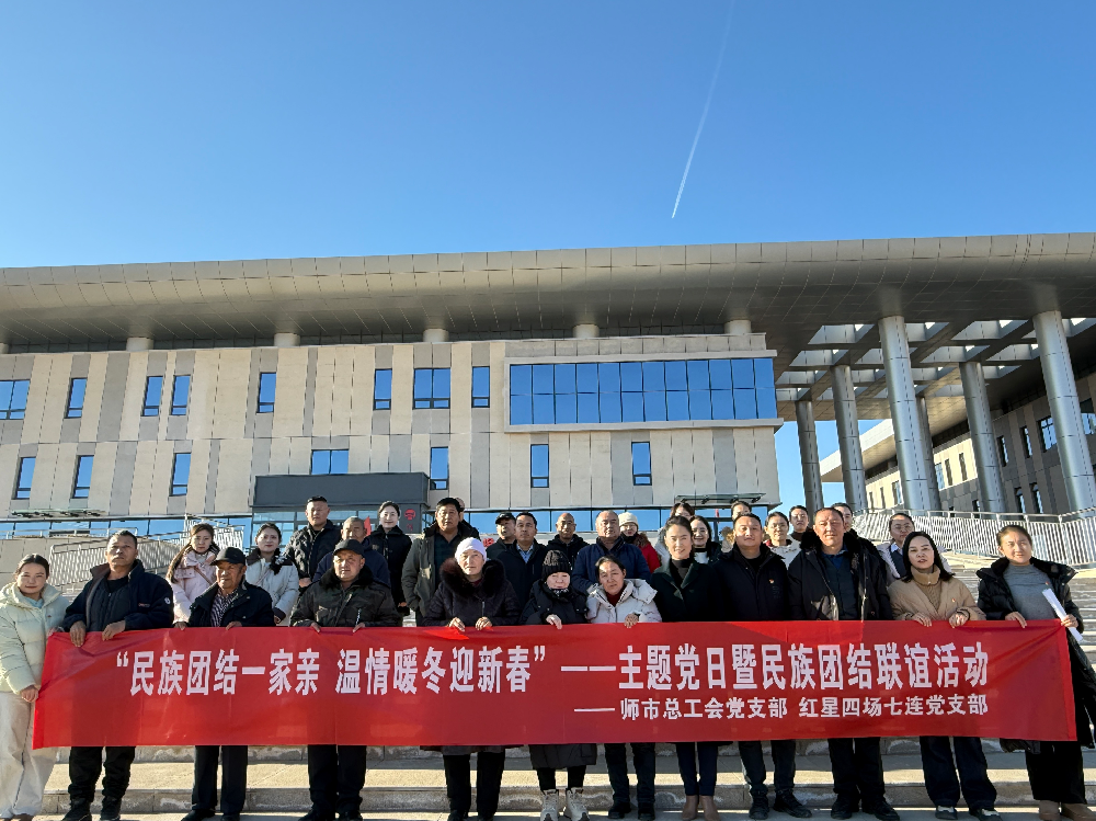 12月24日,师市总工会党支部联合红星四场七连党支部开展“民族团结一家亲 温情暖冬迎新春”主题党日暨民族团结联谊活动,共有党员干部、少数民族职工40余人参加。