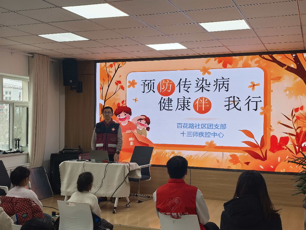 2026年2月5日,十三师疾控中心党支部联合百花路社区开展“预防传染病 健康伴我行”专题宣教活动,面向社区居民、返乡大学生及志愿者共30余人普及健康知识。