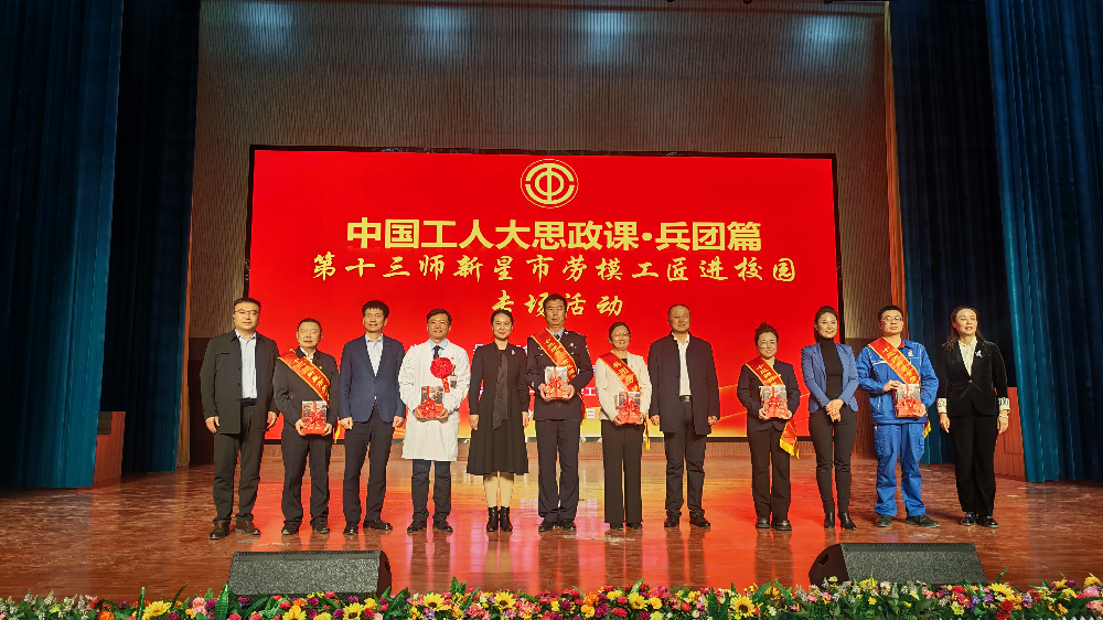 3月25日,由兵团总工会主办,师市总工会、教育局、师融媒体中心联合承办的2026年“中国工人大思政课・兵团篇”第十三师新星市劳模工匠进校园专场活动,在新星市第一高级中学成功举办。