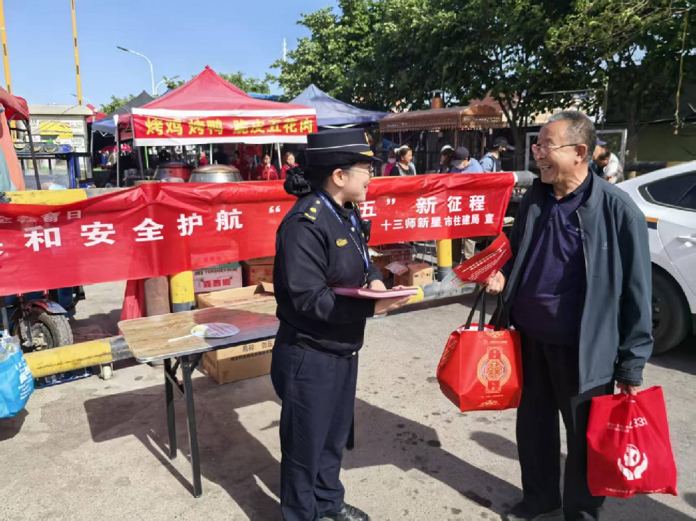 今年4月15日是第11个全民国家安全教育日,为深入学习贯彻总体国家安全观,切实提升群众、企业及施工单位国家安全意识,第十三师新星市住房和城乡建设局紧扣国家安全教育日主题,立足住建领域执法服务职能,以“城市管理进社区、进工地、进企业”为载体,全面开展国家安全教育宣传活动。