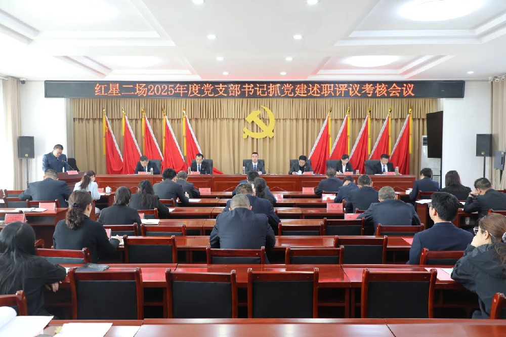 为深入贯彻新时代党的建设总要求,全面落实“抓好党建是最大政绩”理念,扎实推进“十五五”开局之年基层党建工作高质量发展。2月26日,红星二场召开2025年度基层党支部书记抓党建工作述职评议考核会议,师市党委第九指导组到会指导,团场党委班子成员、机关事业单位主要负责同志、各党支部书记及部分“两代表一委员”、基层职工党员代表40余人参会,盘点成效、查摆不足、共谋发展。