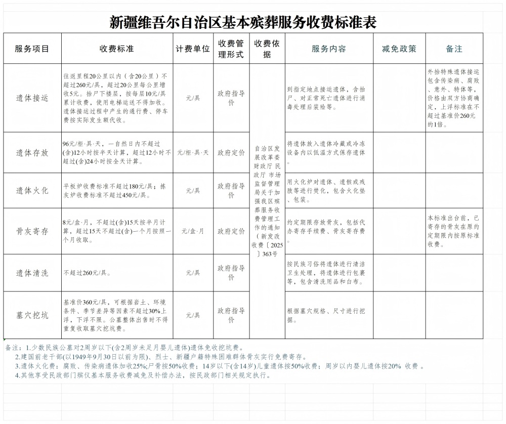 新疆维吾尔自治区殡仪基本服务收费标准表