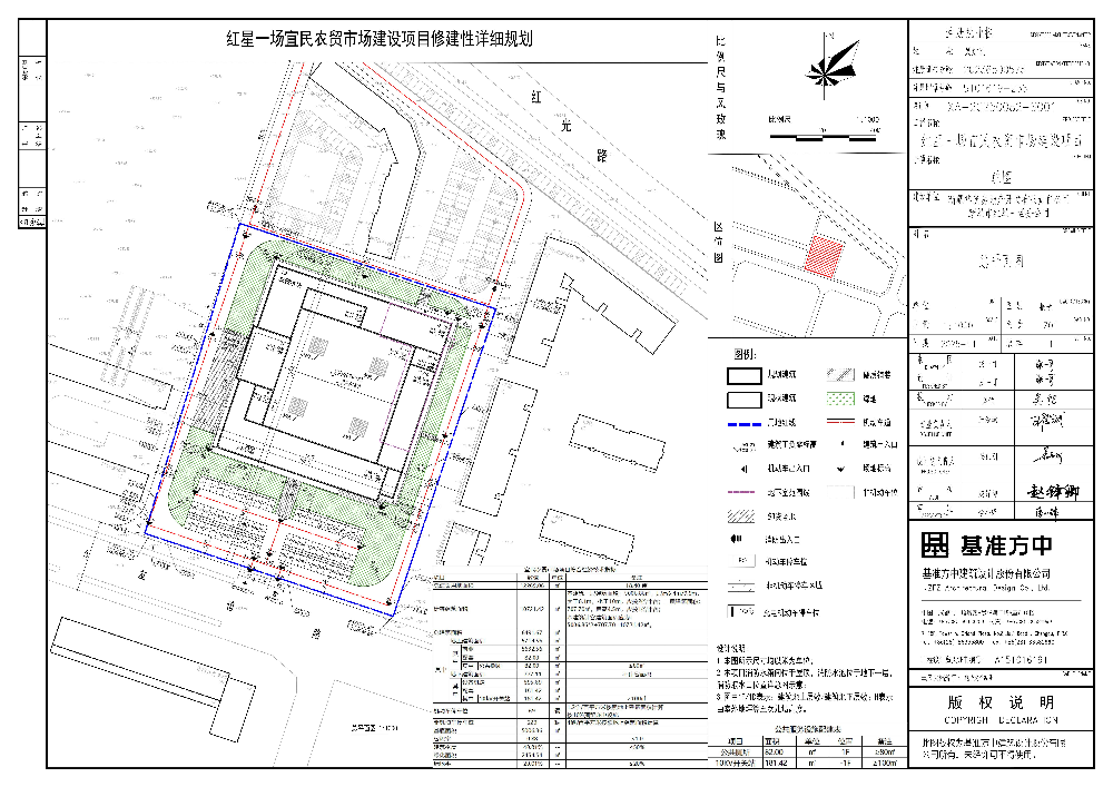 建筑规模:新建农贸市场及其配套设施,总建筑面积6491.67㎡(其中地下建筑面积777.11不计容),计容建筑面积10721.42㎡